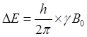 不同的自旋磁矩有序排列对应于原子核不同的进动夹角和进动方向,以最简单的氢原子核为例,自旋量子数为1/2,故能级只分为两个,两能级之间的能量差为: